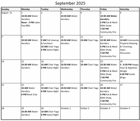 Check the Sandy Shores Facebook Page (Sandy Shores Life in Maine) for last minute changes or editions to this calendar.