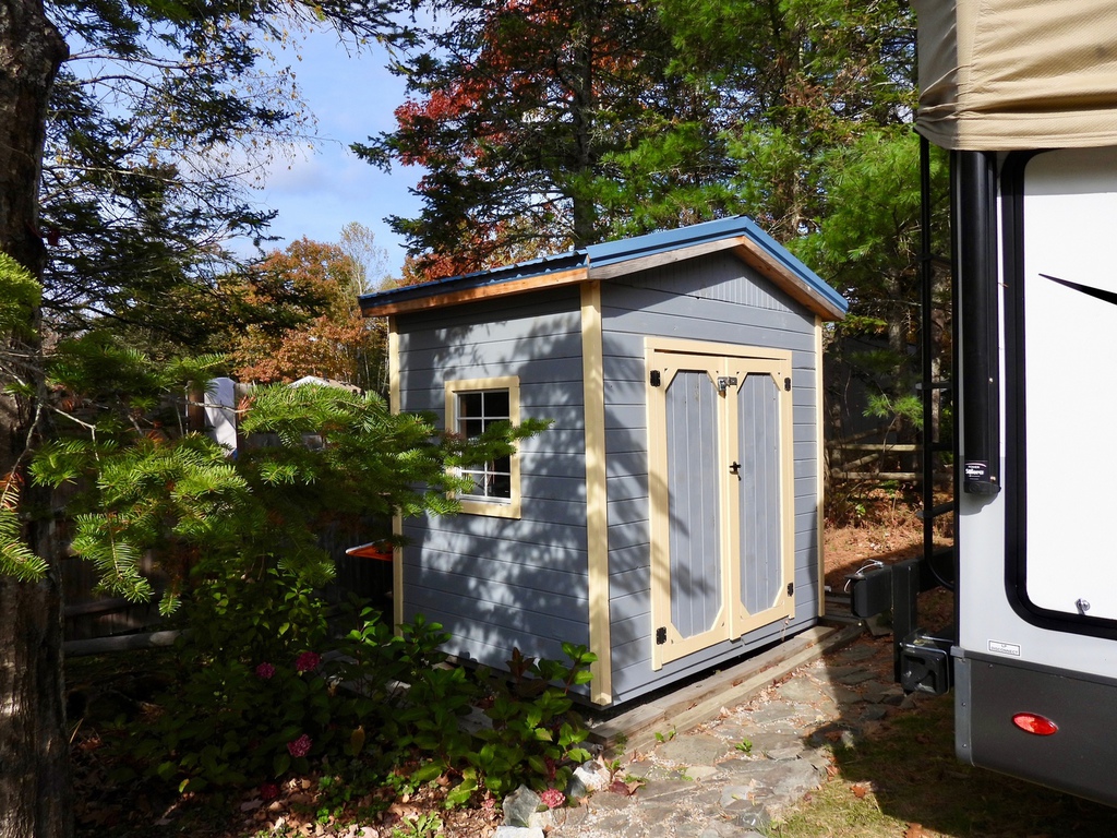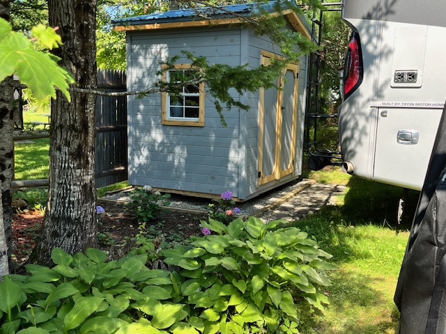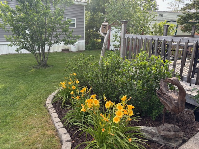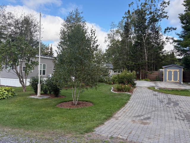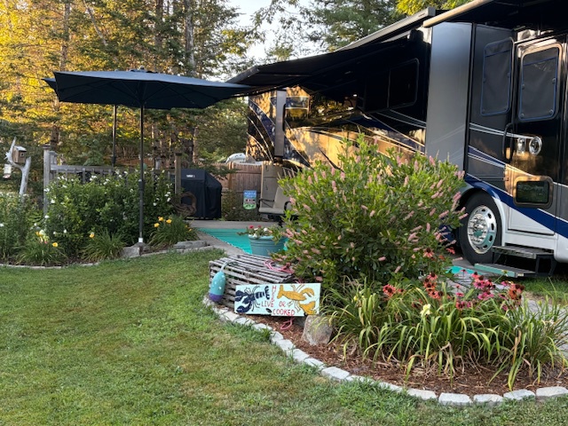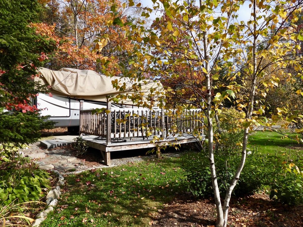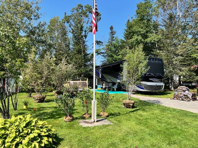 This level site features a concrete pad, paver driveway, deck, shed and a wide grassy area. It is equipped with 30/50 amp electric, water and sewer. It is convenient to the clubhouse and amenities as well as washroom and laundry facilities.