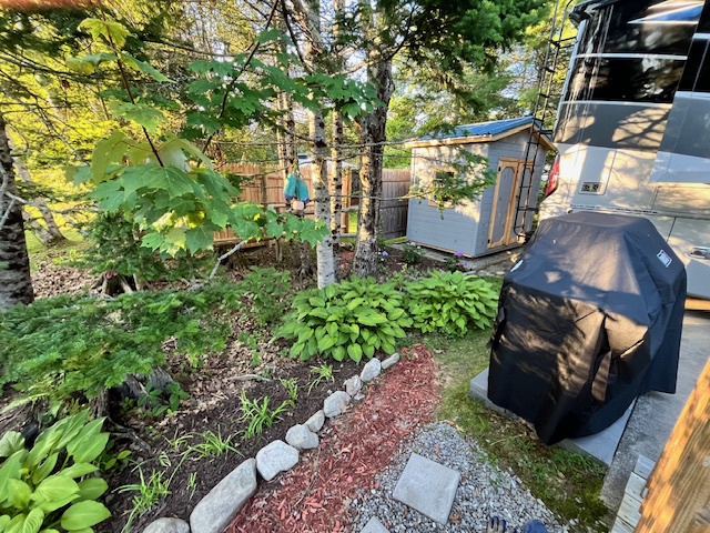 The lot has extensive landscaping, with perennials for ease of maintenance, blooming throughout the spring, summer and fall. Creating privacy and relaxing outdoor space. The lot includes Weber Gas Grill, Patio Furniture including cushions, Market Umbrellas (2) and misc. garden supplies in the shed. Kayaks are negotiable.